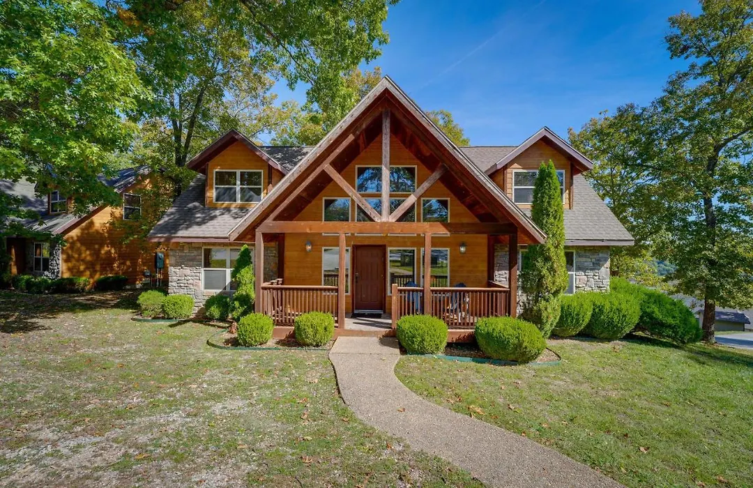 2 Mi To Silver Dollar City! Spacious A-Frame Home comes with a bathroom with a separate toilet and a washing machine. A dryer, toiletries, and bath sheets are also featured for your comfort.